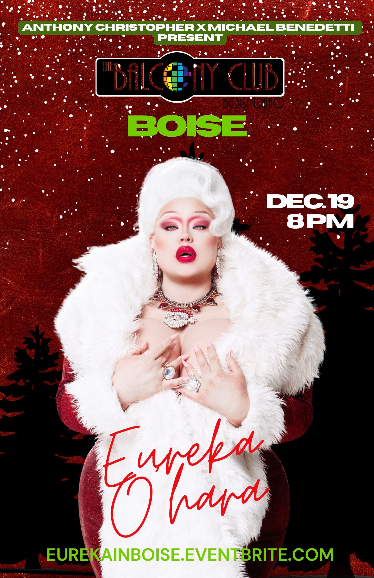 Boise are you ready for this! It is going to be epic and a great way for some Holiday Cheer! We will have the one and only Eureka O Hara from RuPauls Drag Race at The Balcony Club! Doors at 7pm show 8pm!