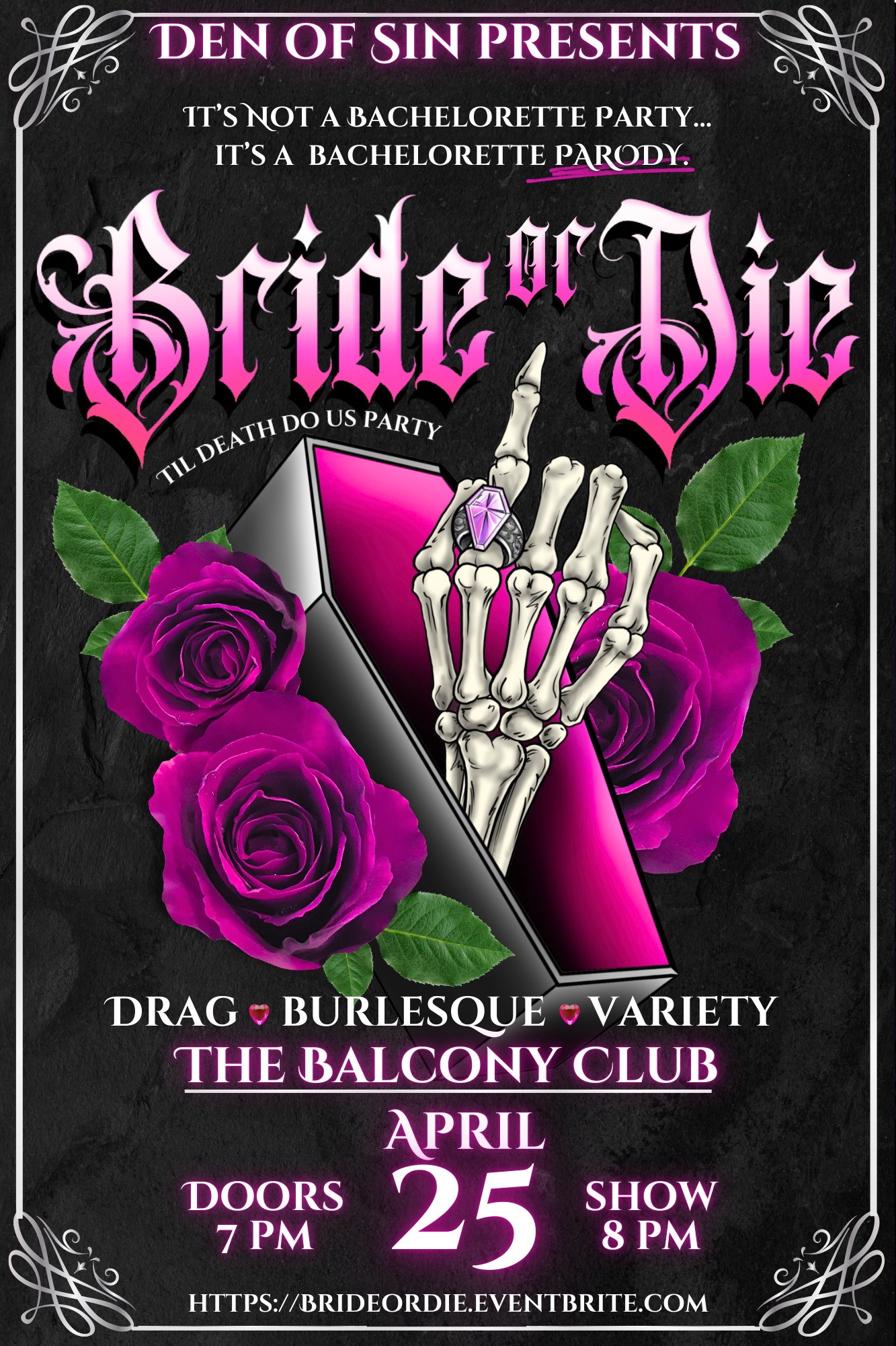 A wildly campy night of drag, burlesque, and comedy inspired by the most chaotic night of any bride’s life.