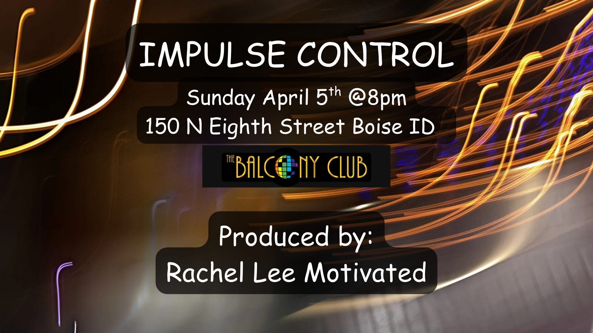 This Sunday, give in to the impulse and come see Rachel Lee Motivated’s Production “Impulse Control” featuring Ada Cicada, Alex Conundrum, Aunt Tifa, Chrome, Dixon Puss E Slaughter, Nikki Doll, Onyx Ex Ex, Val Thunderpussy, Vanessa Divine and Rachel Lee Motivated!